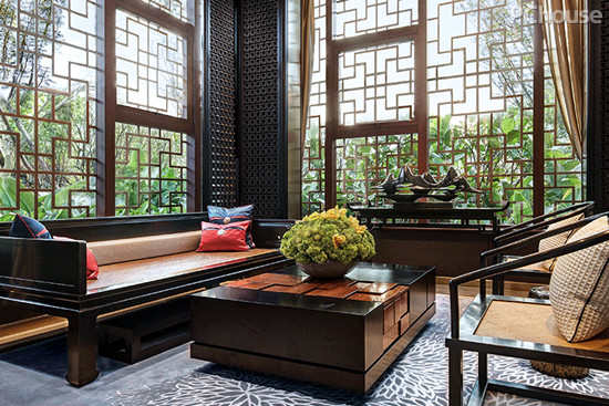 阳光幽幽穿过丛丛绿意的庭院,在简式的传统家具上斑驳跳跃。瓷的白净,檀木的香,丝绸的柔,挂画的壮丽,古雅高贵的气韵于此应运而生。