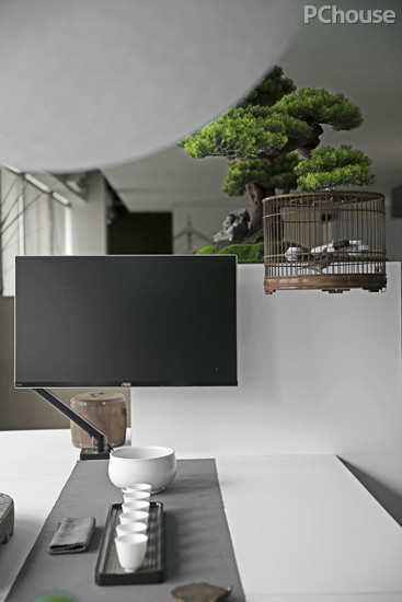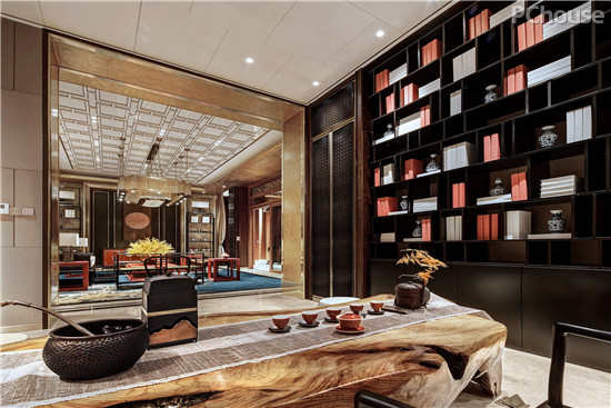 茶道的古韵古香透露着恬淡优雅的生活氛围。脱叶已疏,几株熟透的柿果压枝;雕花柔美,更显木版画上楼阁的刚劲肃穆,折射出设计对传统合院式空间意境的追求与传承。