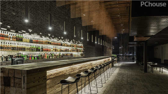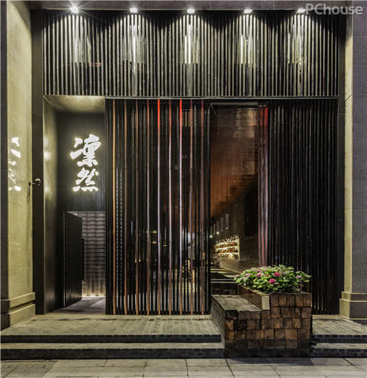 项目位于重庆江北区鎏嘉码头,设计包括室内和外立面改造。外立面由黑色炭化木条和紫铜条构成,在繁华的闹市中显得低调而内敛。手工灰砖地面从室外延伸到室内,把城市的气息带进来,弱化边界,是一种迎接的姿态。外立面可打开的活动窗则将店内的景象和灯光投射进城市,将放松休闲的夜生活向城市铺开。