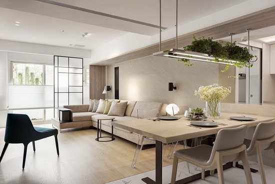 编辑点评:自然光由玻璃立面穿透进入室内,也让客、餐厅拥有优质的采光机能,赋予空间敞朗明亮的视觉感受。