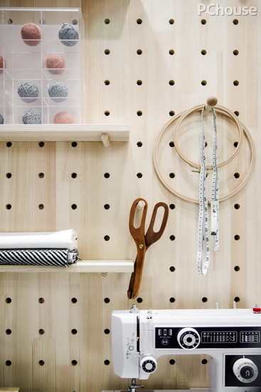 设计师在设计时同样对家私的使用可能性作了细致的考量。作为一个相对较小的户型,家私的使用应该会更多注重其多功能化,这样的考虑,能有效增强空间的生活气息——譬如餐桌,除了用餐外,它很可能还是业主一家临时的工作场地和重要的沟通交流的场合。即便是在墙面,设计师也细心的安排了一块软木贴板,作为留言、孩子涂鸦作品的展示位置。