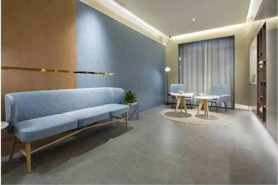 如家NEO产品的美学理念专注于舒缓的空间曲线以及简约的线条。这些线条代表了如家这棵品牌大树近年来每一年的蓬勃成长、开枝散叶,以及脱胎换骨般嬗变的风采。线条分为三个层次,分别代表了如家酒店1.0 时代,1.5时代,以及第三层次的3.0时代。所有这些元素都应用在了酒店的细节设计当中,如墙体、地毯、挂毯等,都充分体现了酒店品牌文化的传承。
