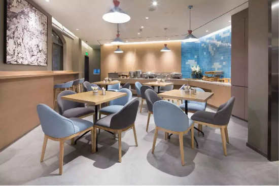 酒店大堂的设计温馨亲切,lounge的设计使用了诸如实木板材、布料以及陶瓷等材料,增加客人如家般的体验。为达到同样如家般的效果,餐厅也使用了同样的装饰材料。