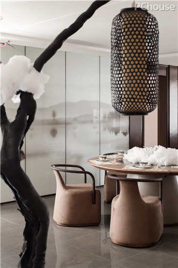 建筑之术,匠人之心,进退之间,不仅是人与景的相逢,更是天地人和的东方智慧。走进茶室,材质和色彩被极尽的克制,体现的是一种精致简单,真正的平静。饰品的摆置亦讲求点到为止,呈现出一派舒适休闲兼具品质的生活景象。