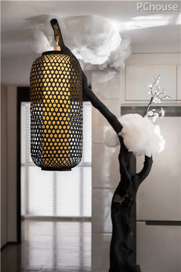 “梦回明月夜,林杉响圆吭”,从天花垂直而下的落地灯,含着虚心的品质,张扬着精进的意气。一眼望去,云朵造型装饰仿佛美出了天际,这方寸间的天地,倒别有一番意趣,秩序中呈现出一抹彩。暗黄色灯光进一步营造了空间的气氛,整个空间对景、虚实、藏露、繁简手法串联各功能空间。