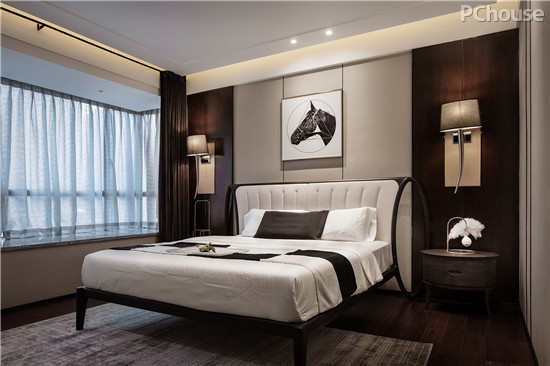 主卧原木家具,接近自然,将当代文化与审美结合传统,提炼中式元素并加以简化和丰富,让家具变得更为简洁秀丽,用空间的语言来表达文化内涵。色调的均衡,调和与对比,“在统一中求改变,又在改变中求统一”,塑造出非同一般的视觉张力。