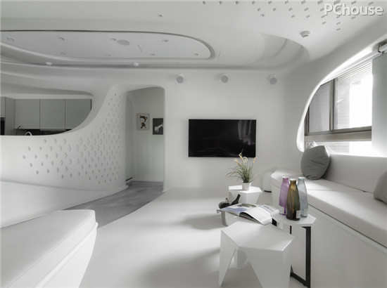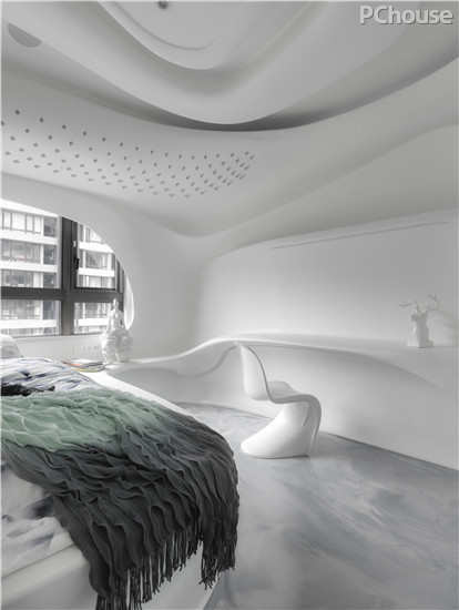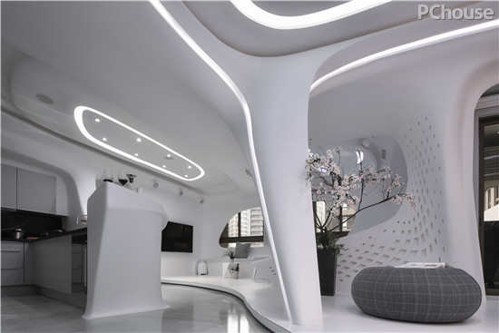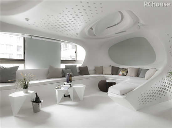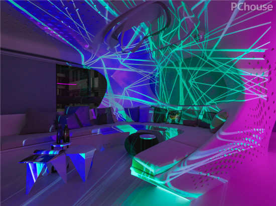 设计师解读:居家所有灯光,帘幕,门片开关,都使用智能控制系统,由计算机或手机操控,目前拥有剧院,夜店,居家等七种情境模式。进出房间,可设定密码,展现强烈的自我风格,这个住家空间不仅风格独特,也很有环保概念,相较于传统装潢,制成模矩的板模可以回收使用,减少耗材也减少对于环境的冲击。兼具独特性格和环保概念的居家空间,让人耳目一新,也创造出未来居家空间的可能性。