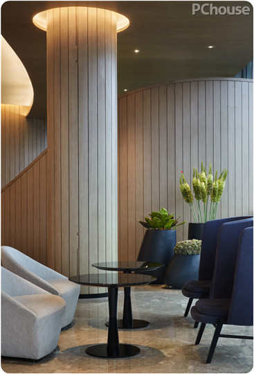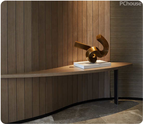 材质的使用上,银白色金属,与先锋感建筑和谐、纯粹的融合。脱离传统的的造型,用木材做出昂贵石材的光泽,像魔术师一般带来惊喜。