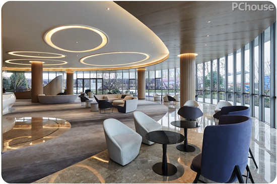 ·VIP室顺应建筑的流线,用半围合的形式营造流畅的空间感。