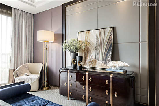 【太平洋家居网 设计频道】本案坐落在广东省汕头市濠江区,拥有蜿蜒绵长的4.5公里海岸线。其样板间设计契合项目区位的优势,借用海滨城市的人文、景色、建筑三者特有的元素,以港式奢华的设计为基调,石材、不锈钢、特殊玻璃、木材、扪皮布等材质灵活贯穿其中,搭配睿智冷静的蓝、自然华贵的金以及中性的色调在空间中平衡出沉稳而不失高贵的特质,体现新时代对生活品质的追求,诠释海岸边幸福温暖的时光。(图文提供:广州奥讯室内设计)
