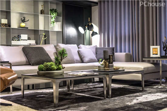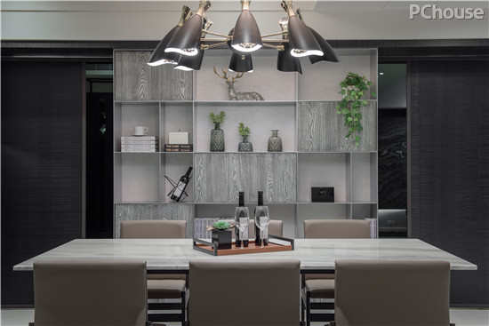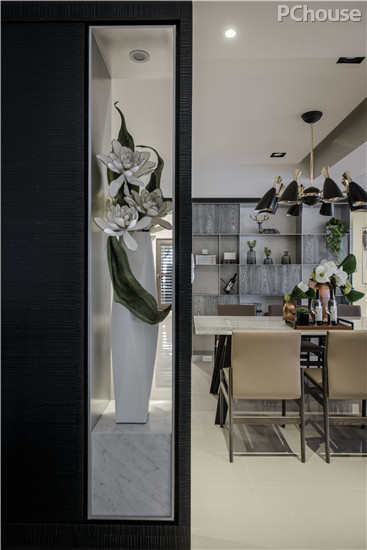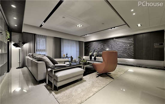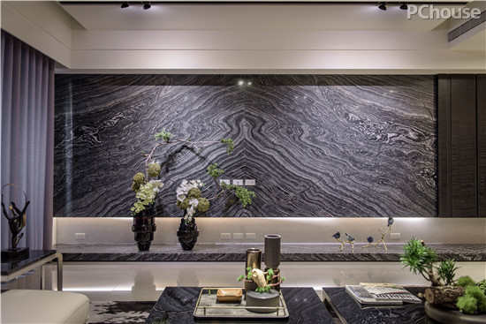 【太平洋家居网 设计频道】一室的沉静,映照在千层银黑的古木纹大理石中,光透出厅堂的大气豪邸之蕴。