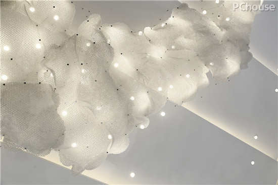 作品《飘》灿如云霞,轻盈洁净,目的在于引入“望”的环节,入口空间人潮渐进,浮想联翩,期盼美景。
