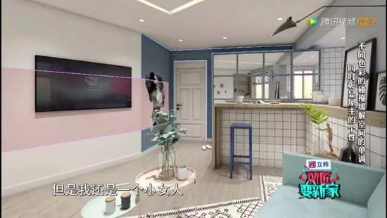 一、用冷暖色打造一个撞色的效果,既突出个性又营造了一个温馨居家氛围。Alan用了灰度里面的一个蓝色表示一个女性的干练,同时里面穿插着粉色,表示我可以是一个女强人,但是同时我也可以是一个小女人。