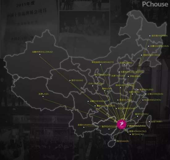 广州设计周2008-2013年期间路演覆盖城市: