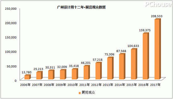 广州设计周2006-2017年参与观众数据: