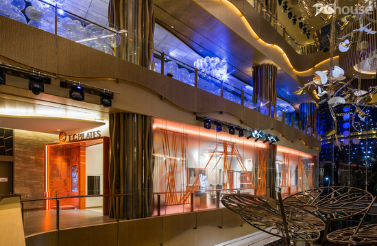 这是一个十分有趣的空间,中间的建筑伸缩缝把圆形立体的空间剖开。设计师巧妙的选用适合展览要求的灯光和展墙材料,成为普拉提的展廊,增加客户互动交流的同时,这里更像是一个艺术空间,而正在进行普拉提的训练的女性这时便成为艺术创作的部分,在这个空间呈现静态而优雅的舞姿。