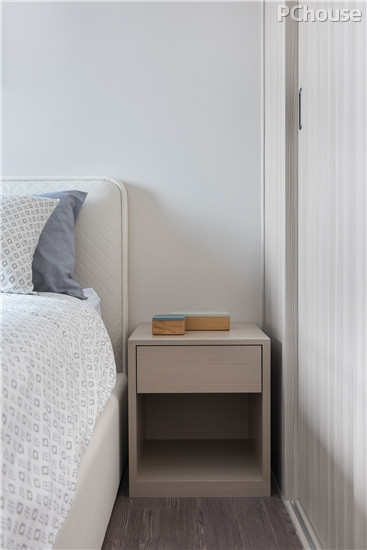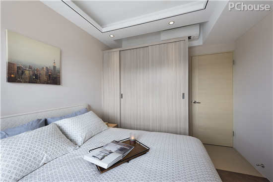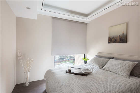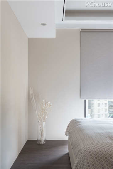 主卧房则延续双厅简洁调性,保持单纯且温馨的舒适氛围。