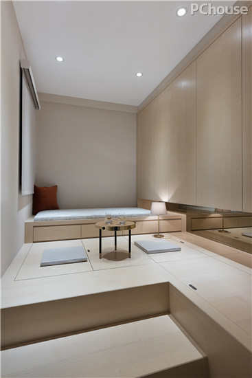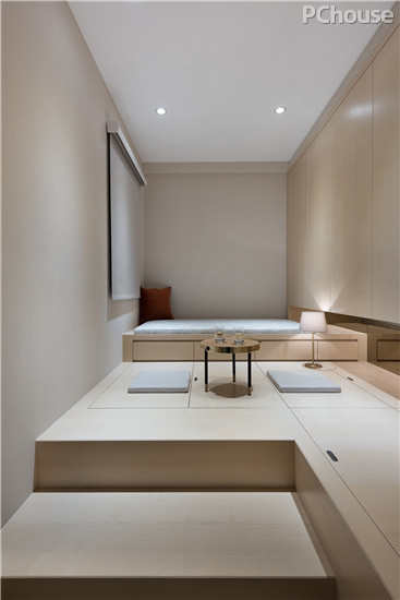 和室房型以架高地板材方便规划地面掀板,加上壁面整柜体,收纳量十足充裕,并能兼具客房或其他多功能用途需要。
