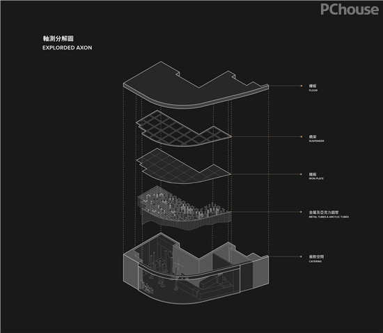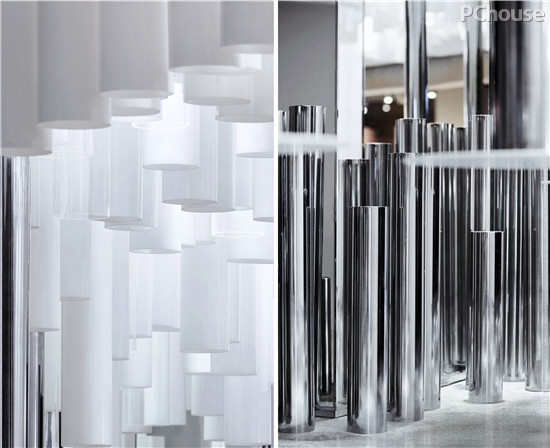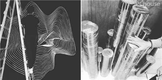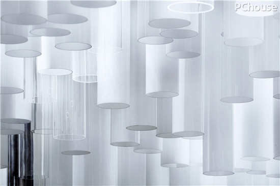 △ 错落有致的管阵,由三种形态的管子组成:金属管、白色亚克力管以及透明亚克力管
