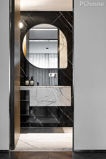 客卫由原本储物间划分而成,黑白灰色调,不同肌理在设计中调和统一,简约而不失细节。