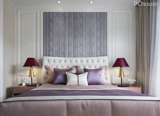 进入主卧,装饰消逝无存,取而代之的是空间及浅至深的色彩语言——烟粉、香芋紫、嫣红。色调层层推进,与材料语汇融合缠绵,令美的余韵从渐变韵律中焕发出来。壁柜上马赛克图纹与藕粉色的碰撞、小灯笼似的花艺、勾勒着梦幻色彩的画饰,含蓄的美感于其中悄然而生,轻语空间不朽的浪漫诗意。