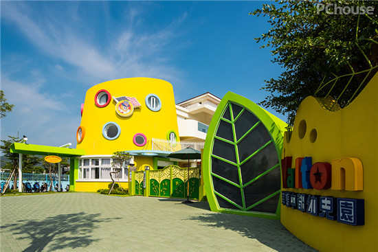 【太平洋家居网 设计频道】应许幼儿一个美好的环境,让孩子在爱中成长茁壮,在快乐中累积竞争力,是园长教育理念。透过脑力激荡出两大主题其一为生态幼儿园,其二为好玩,藉此凸显中都华顿幼儿园位处高雄市中都湿地公园旁的优势。