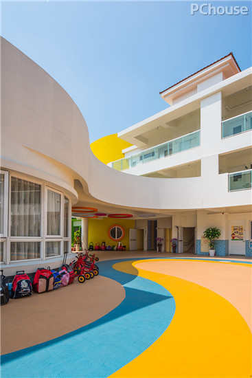 敞朗明亮的中庭给予一处自由奔走的天地,趣味十足的弧形跑道与空间中的曲线相呼应;让孩子们在大地中游戏,在自然中学习。不论是建筑外观,或是室内空间;皆采用多彩的元素及丰富的线条,让幼儿园充满生机活力!设计团队藉由空间动线的安排,与明亮色彩点缀,为孩子们的童年时光留下美好印记。
