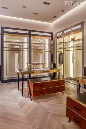 而要令这个概念变得轻盈,首先便要塑造出开阔的感觉,这在有限的空间之中是一大挑战。衣架和货架和从墙壁向外移,鼓励顾客在黄铜桌子和质感温暖的木制抽屉之中慢慢选购产品。优雅的灰色木地板可以营造出温暖而通爽的氛围,让质感丰富的衣服面料可以更突出地表现自我。