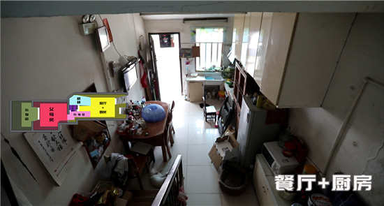 改造前,业主家厨房操作台面长度不足2米,被瓶瓶罐罐摆放得满满当当,随时有物品掉落的危险。自男业主生病后,家中的重物皆由女业主搬运,因为房梁高,壁柜也很高,每次拿东西都要踩灶台,十分危险。