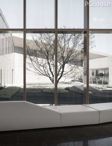 洽谈区置放于自然之中,充分利用建筑空间与光线的关系进行设计。材质与色彩的纯粹性,随着三角形态窗户的扩大,空间对光线的敏感度被发挥到极致,自然的气韵于其中自由穿梭,人们置身其中,感知自然光线的变换、四季的更迭,于一片静谧中,抒发对生命的遥想,唤得身心的舒惬。