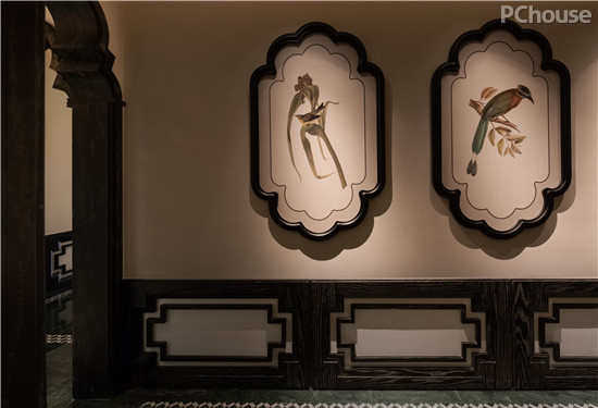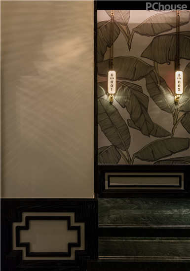 走廊设计上,复古泰国装饰元素任意挥洒,青绿阔叶植物图案和工笔细描的花鸟装饰都在诉说着热带古国的勃勃生机。