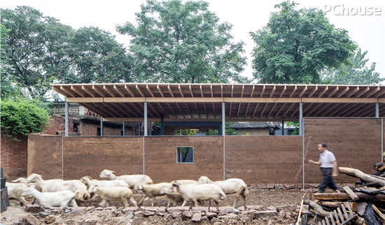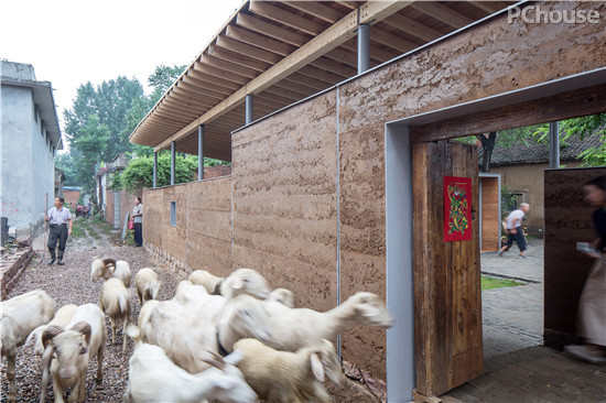 改造后的院落既保留了北方农家小院的传统风貌,用特制夯土重塑的院落围墙,既保留着老院墙的痕迹,又有着现代夯土的简洁明快。现代钢构与木构所打造的夯土围墙与长廊,实现了中国建筑技艺中,传统与现代的完美有机结合。