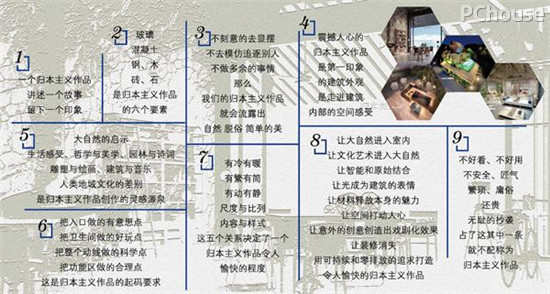 归本主义理念除了引导我自己,同时也引导海岸按照这样一个思路进行工作。在设计中尽量减少对自然的破坏,对于一些进口的高大上的材料,对于能源的消耗其实非常大,还有各种化学涂料、壁纸、乳胶漆、高附加值的地面材料,对于地球的破坏都非常大。这些材料我们用的就比较少,取而代之的是使用一些可持、续可循环的材料。对于木材,首选别人用剩下的、房屋拆迁后得到的木料或是死亡的树木,还有一些可以循环再利用的材料都是我们首选,比如钢材。为了让我们的作品更好地体现归本主义理念,我又通过一步一步的努力,形成了一部“设计律法”,它是我们团队要遵守的设计条律,叫做“九一律”。从第一条到第四十五条,这些条款彰显归本主义的追求,展现我们的设计思想,约束作品不能触碰的红线。主张的东西、禁止的东西、强调的东西,统统通过这个条律把它固定下来,保证每一个作品都是原创的,都会成为这个区域受人瞩目的、正能量的、令人愉悦的作品。
