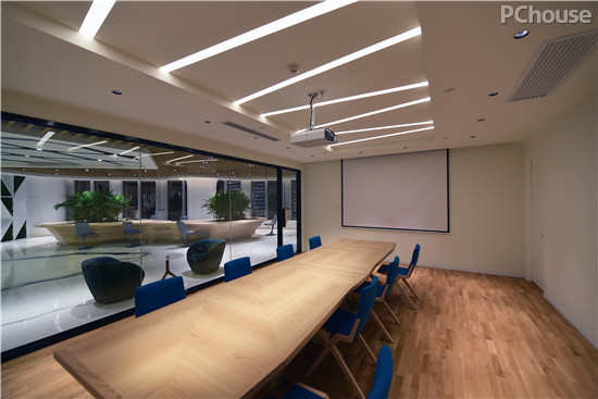 会议室和主管办公室大面积的玻璃隔断设计,让整个空间在视觉上变得更加开阔。