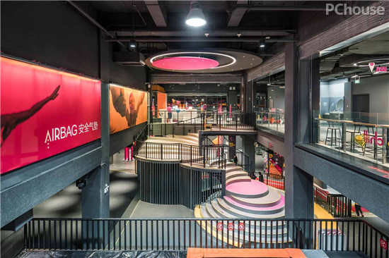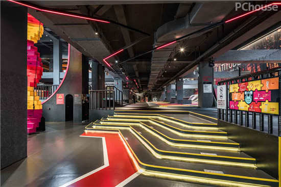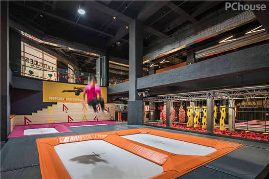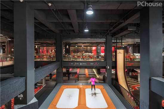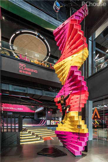 本案最大的困难,一是在于商场内部的消防问题,因为蹦床与攀岩皆需要足够的高度,一旦打开楼地板就破坏了塬有的消防分区;二是为了整合品牌形象,需将所有设备厂商的色彩与面料做一个充分的协调,而製作厂商散佈于世界各个国家。最终在打造整体形象的过程中,解决了消防法规、品牌色彩视觉系统、标示系统与业态分析等一系列问题,设计师完成了整体设计的协调平衡。