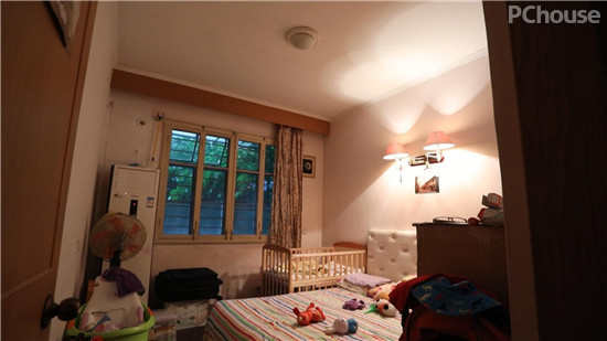房子的卫生间虽然有对着楼道和小卧室的两扇窗户,自然采光却基本为零。而且,这个卫生间的位置处于全家卧室的“交通枢纽”,使用起来相互影响非常大,晚上全家都无法休息好。