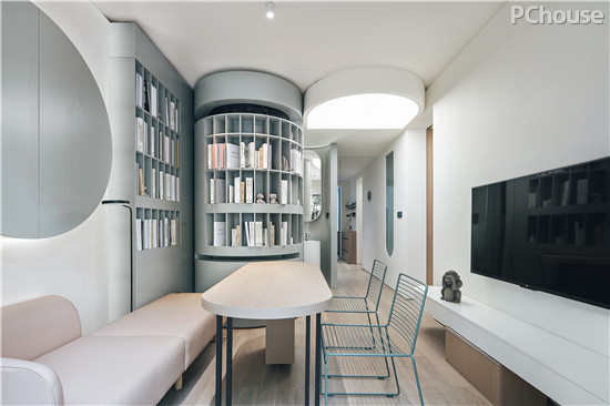 此外,利用全屋房中大量边角空间增设的储纳空间,多达17立方米,并进行了详细的功能分区,满足孩子成长中一家人的需要。
