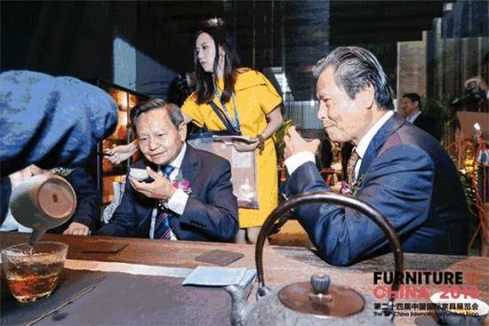 为了向嘉宾们展示今年家具展的亮点,王明亮先生在开幕典礼的结束后带领着各行业领导和海外嘉宾一同穿梭于E1~E7以及E8B色彩·中国家居展区,参观今年别具特色的展商和活动。