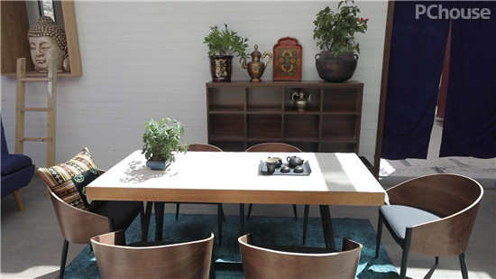 阳光房和客厅贯通后,不仅面积整体扩大了,还兼具了餐厅的功能。