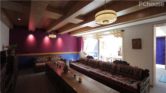 室内的区域,不仅是样式上增加了许多具有藏式风情的装修隔断,在墙面颜色上,设计师也根据不同空间,选择了不同的色彩与之对应。