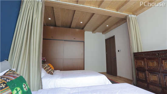 外墙墙面,设计师选择了开放式外墙漆,既能暴露木纹机理,白色也是向传统藏式建筑致敬。