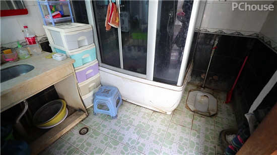 最靠近门的地方是全家唯一的卫生间,面积狭小,由于管道和水压的问题,房间已不具备浴室的功能。