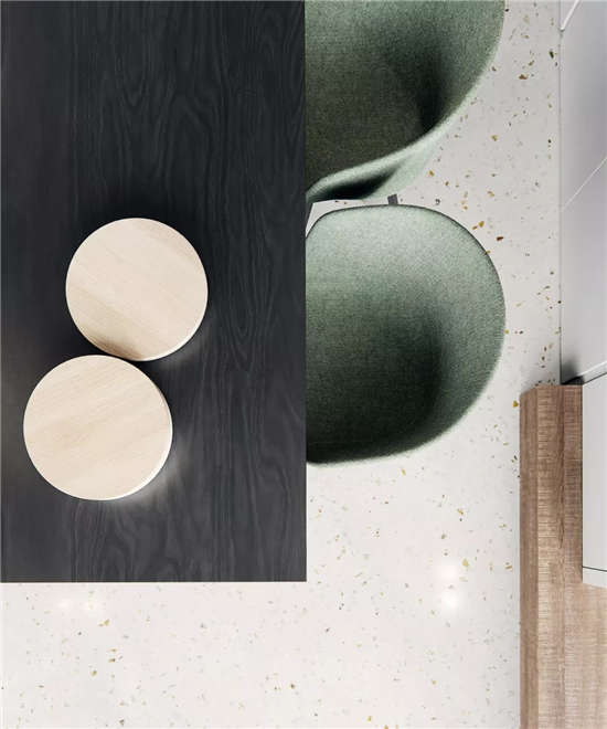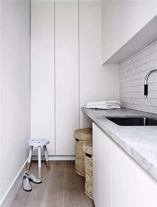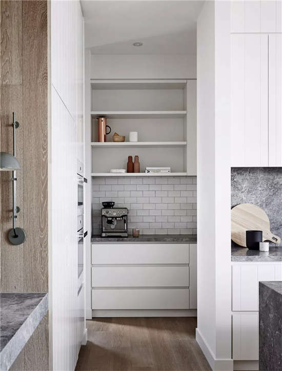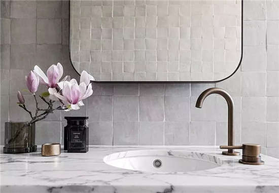 木质本身有自然、温暖、手工的感觉特征,与深沉的灰色系大理石呼应,顿时产生高雅古典的气质。