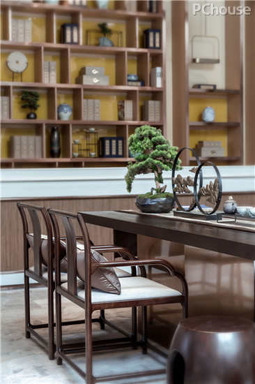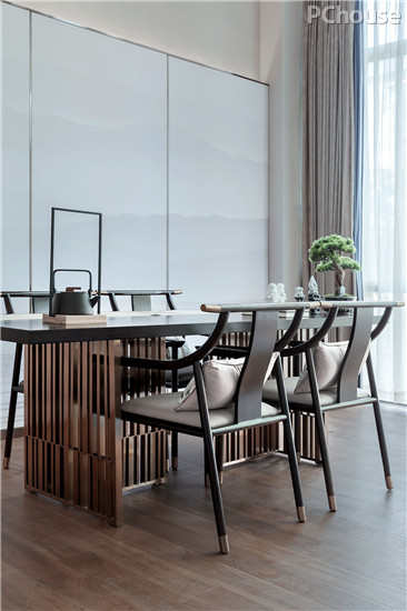 将传统中式的提炼和升华,也是对传统中式的尊重,设计师将东方美学用现代手法巧妙应用到软装家具饰品中,把复杂的空间元素简练,给人一种沁润、意墨之境。