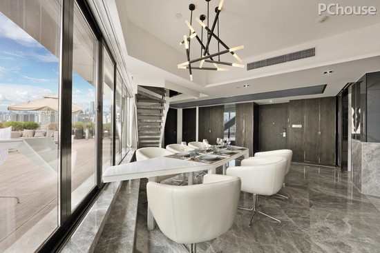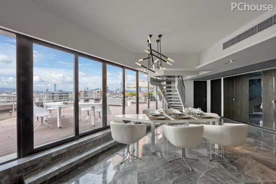 生活在繁杂多变的都市里已是烦扰不休,而简单的生活空间却能让人身心舒畅, 顶层的复式公寓身处在城市的繁华之中,别树一帜的设计却能远离城市的喧嚣,让人感到宁静与舒适,让躁动的心得以安抚平静。