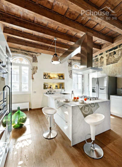 编辑点评:岛屿上的自然风光固然美丽,但室内的景色也绝对不能认输。田园风格十足的厨房,自然的天花板,个性化的墙壁都引人入胜。