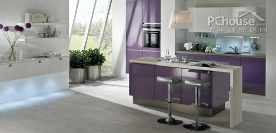 编辑点评:轻柔的紫色,温柔而典雅。在白色的厨房中加入这样淡雅的紫色,以及随性的紫色花朵,让这款厨房独具小清新风格。