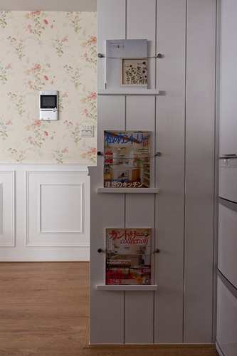 设计师利用玄关屏风墙背面空间设计造型书架,营造日式杂货居家风格。