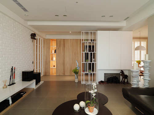 简洁的白净是空间主要基底,搭配上木质纹理或局部色彩空间即有了层次表现。