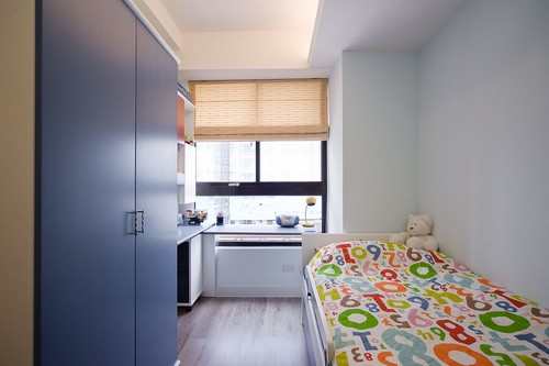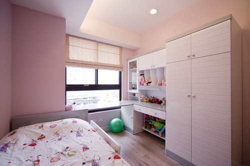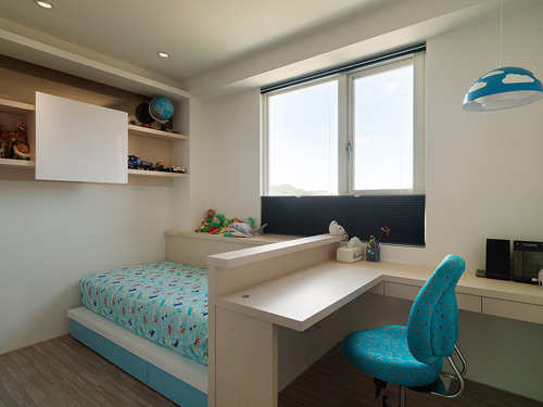 床头与书桌的结合,流畅统整小孩房的生活机能。